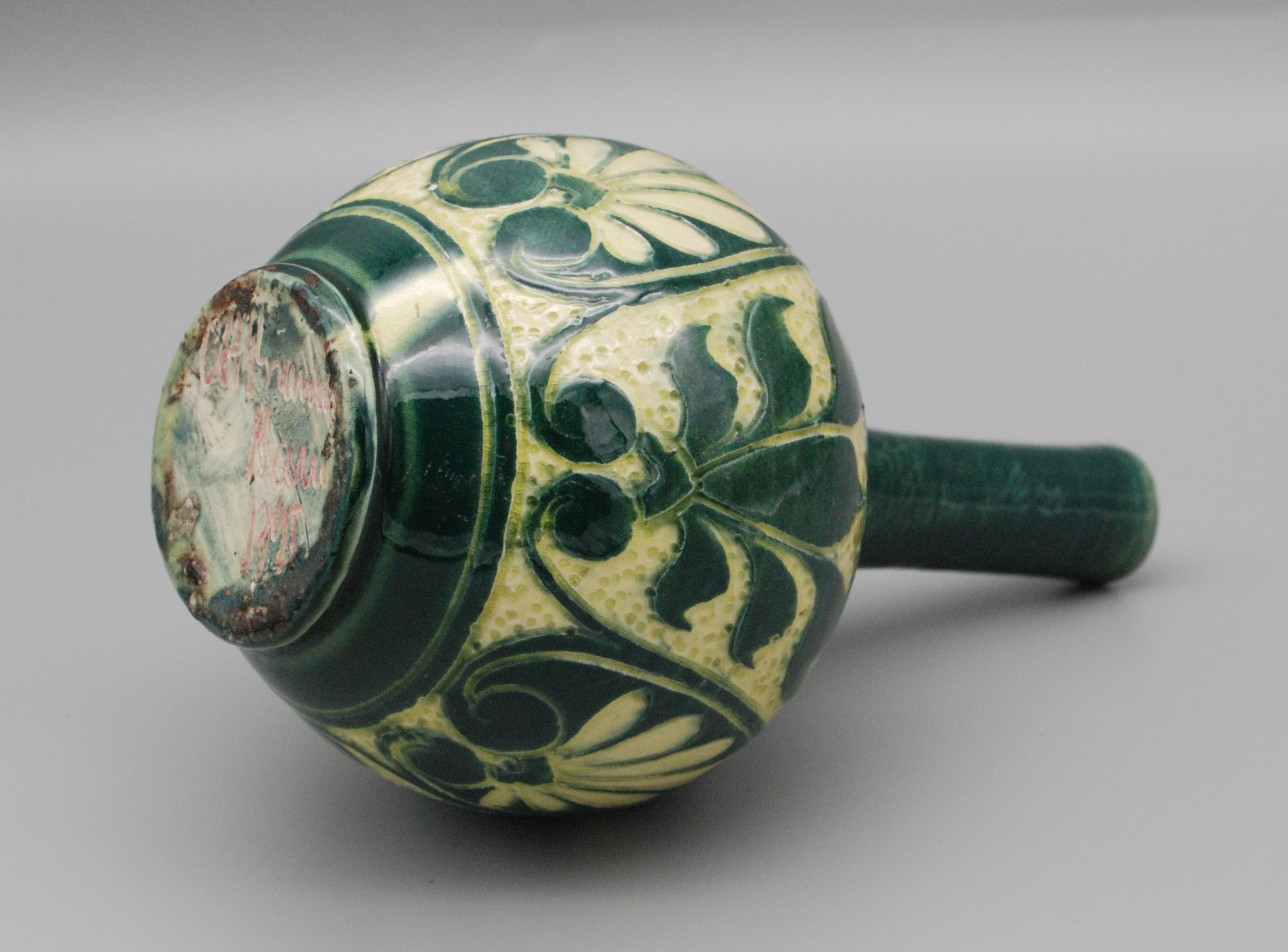 Charles Hubert Brannam established his art pottery in Barnstaple, Devon (historically known as Barum) in 1879, after convincing his father to allow him to produce decorative wares at their traditional utilitarian pottery works. Utilizing the local red Devonshire clay, Brannam perfected the use of colored slips and the sgraffito technique—scratching through the slip to reveal the contrasting body beneath before glazing.