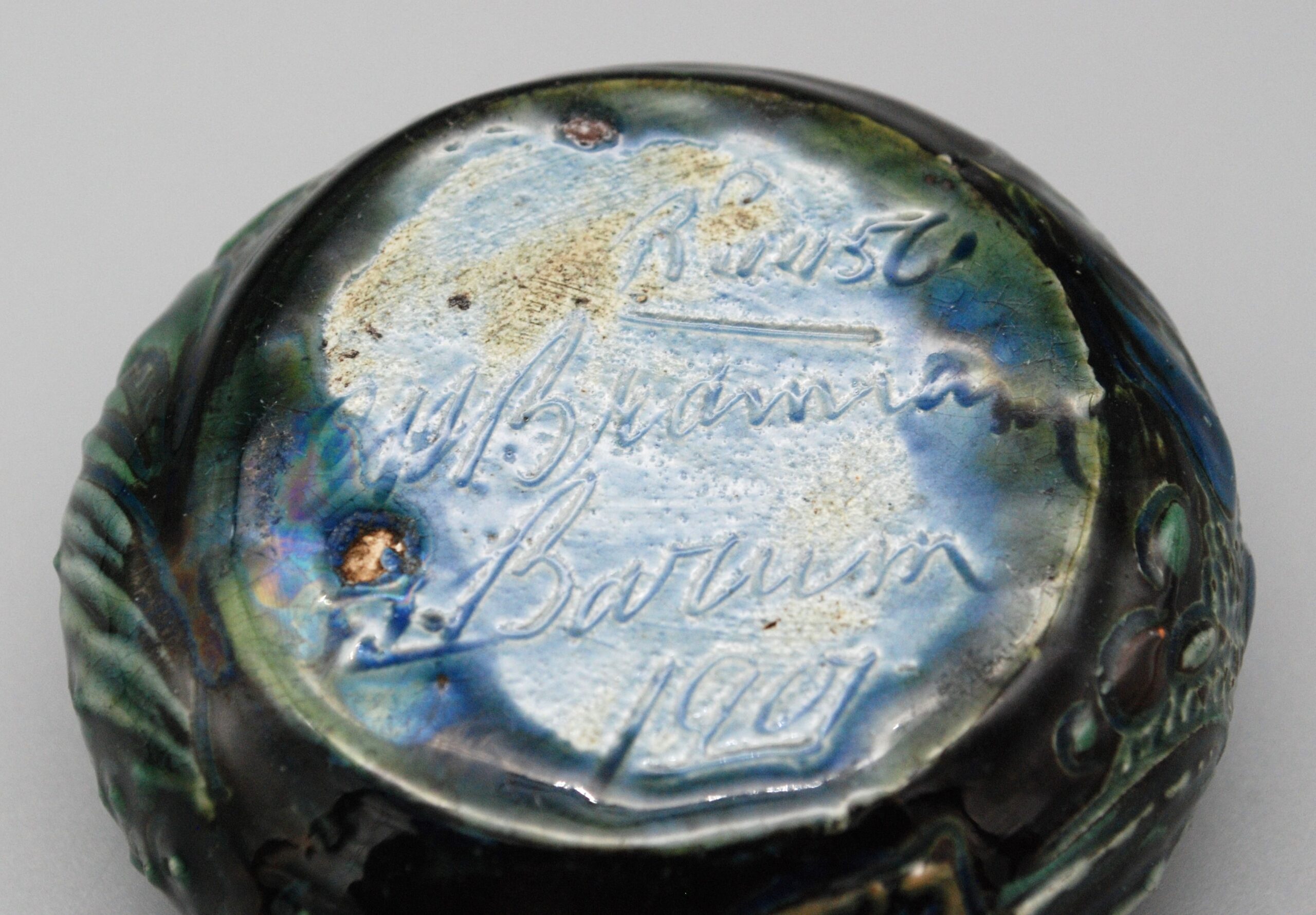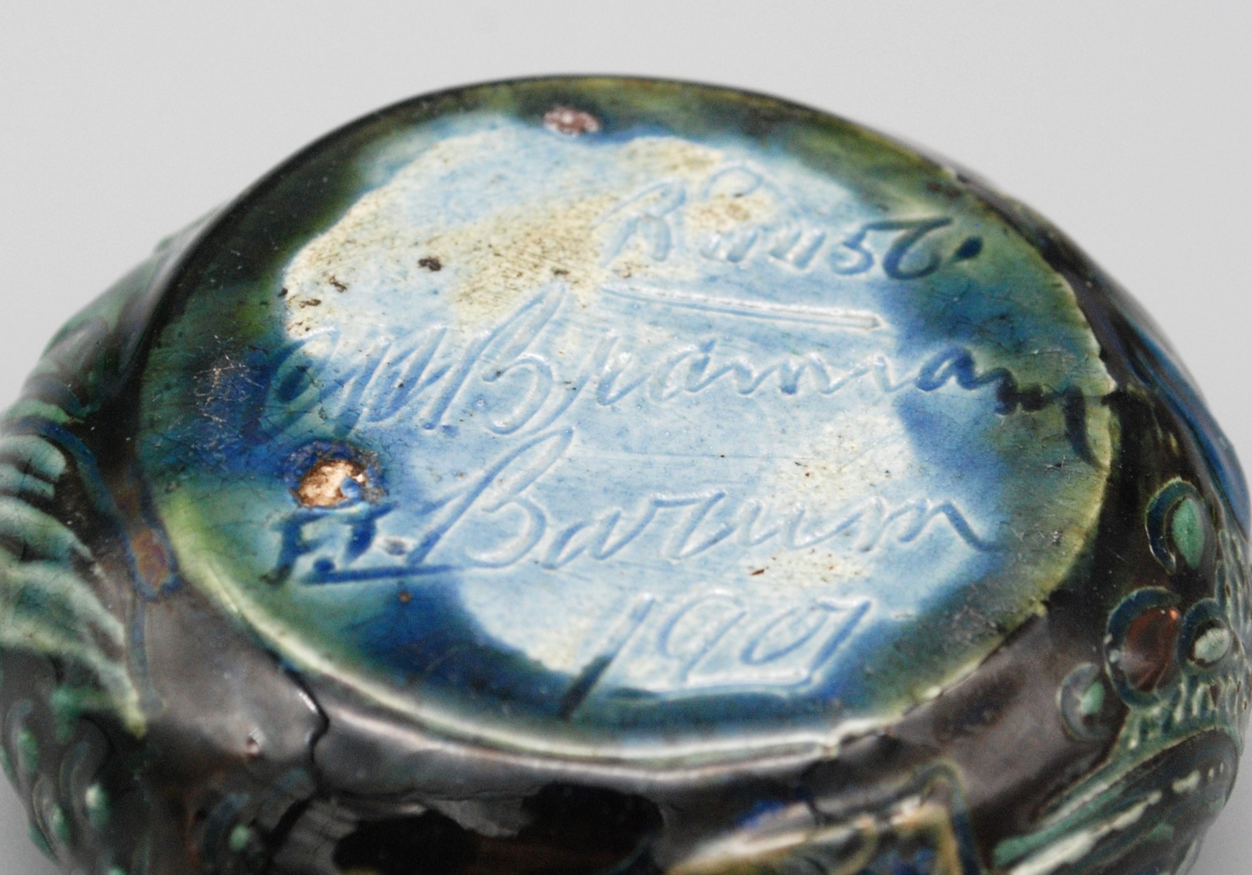 For authenticity, beneath, we have the registration number of CH Brannam, “Rd 44561”, the signature CH Brannam Barum, the signature “FT” signifying the work of Frank Thomas and the date 1901.