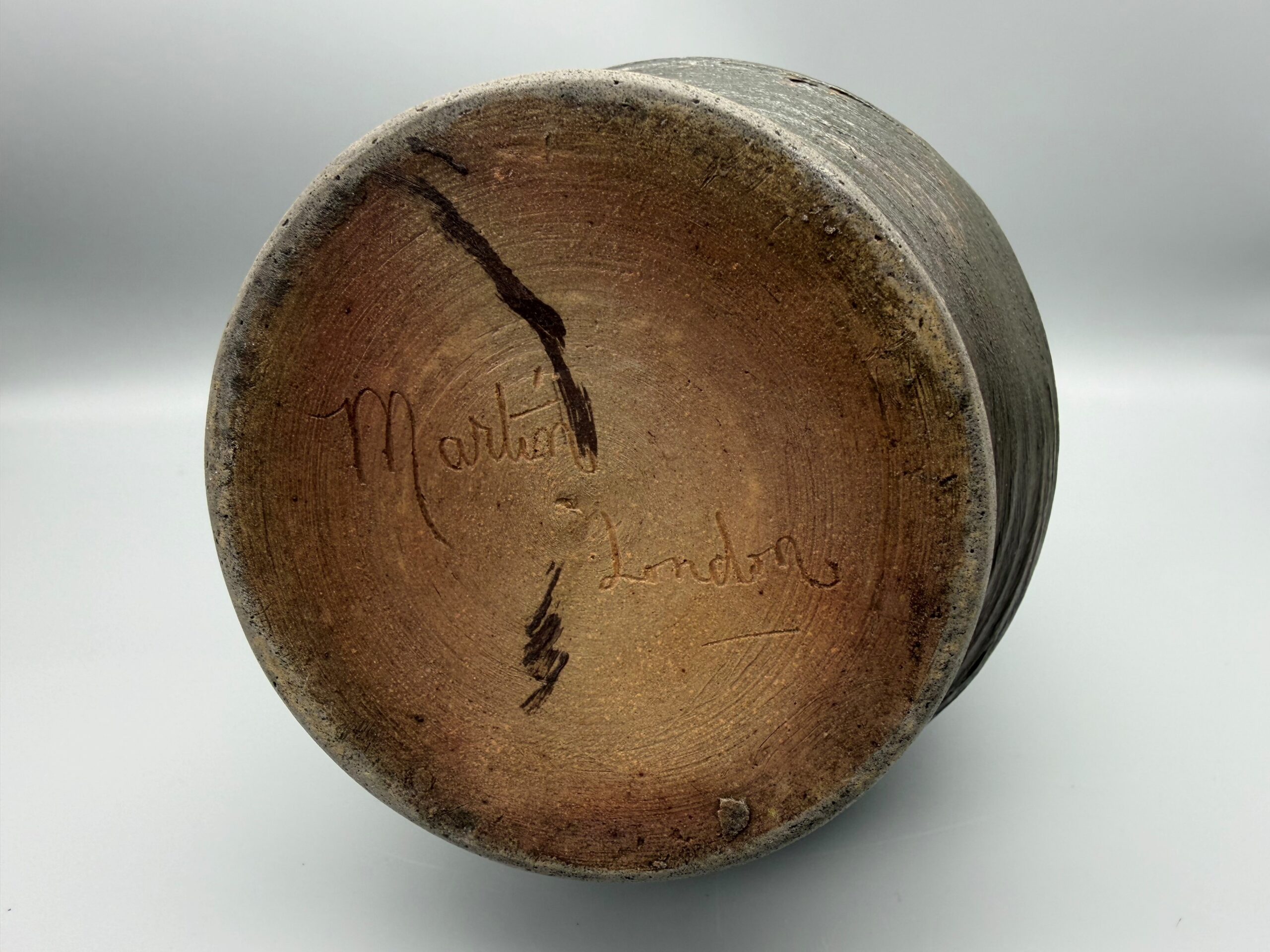 Beneath the foot, the unglazed natural clay base proudly bears the authentic, hand-incised cursive signature reading “Martin” and “London”, securing its prestigious provenance. Preserved impeccably, this remarkable piece presents in excellent, original, and entirely undamaged condition, making it a museum-quality acquisition for discerning collectors of late 19th and early 20th-century British studio pottery.